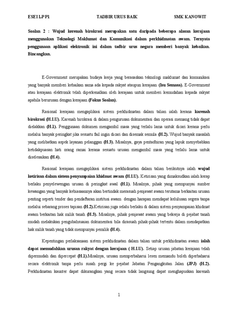 Esei Sistem Penyampaian Perkhidmatan Awam Pdf